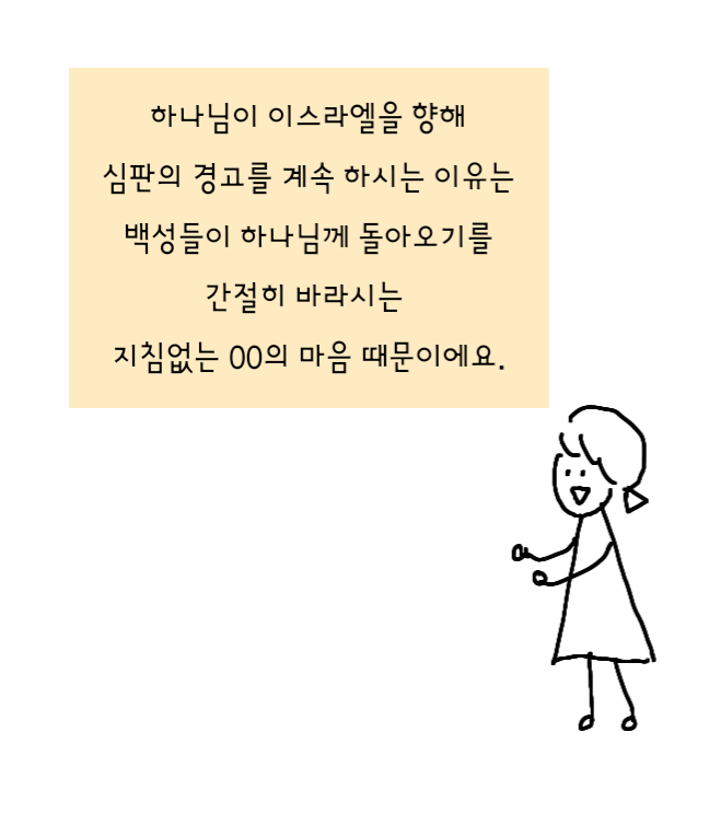 그만큼 하나님이 백성이 돌아오기를 간절히 원하심을 나타내는 것. 끊임없고 지침없는 자비의 마음.