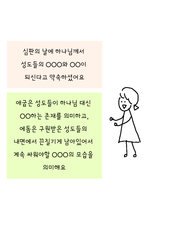 →에돔 : 구원받은 성도들의 내면에서 여전히 끈질기게 뿌리내리고 남아있는 옛사람의 모습을 의미. 계속되어야 하는 싸움.